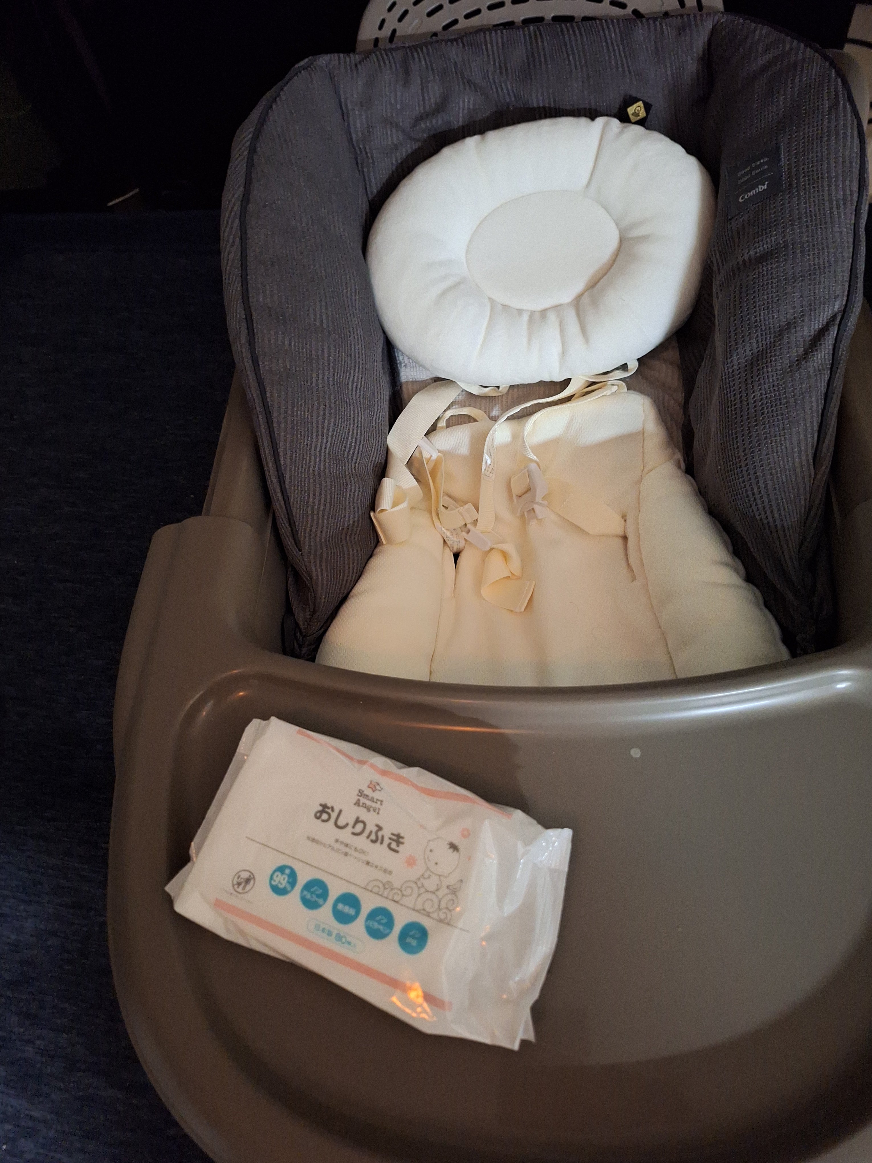 最初は泣いてしまってましたが、ミルクあげてオムツ変えて機嫌がいい時に乗せるとそのうちにウットリして寝ました。