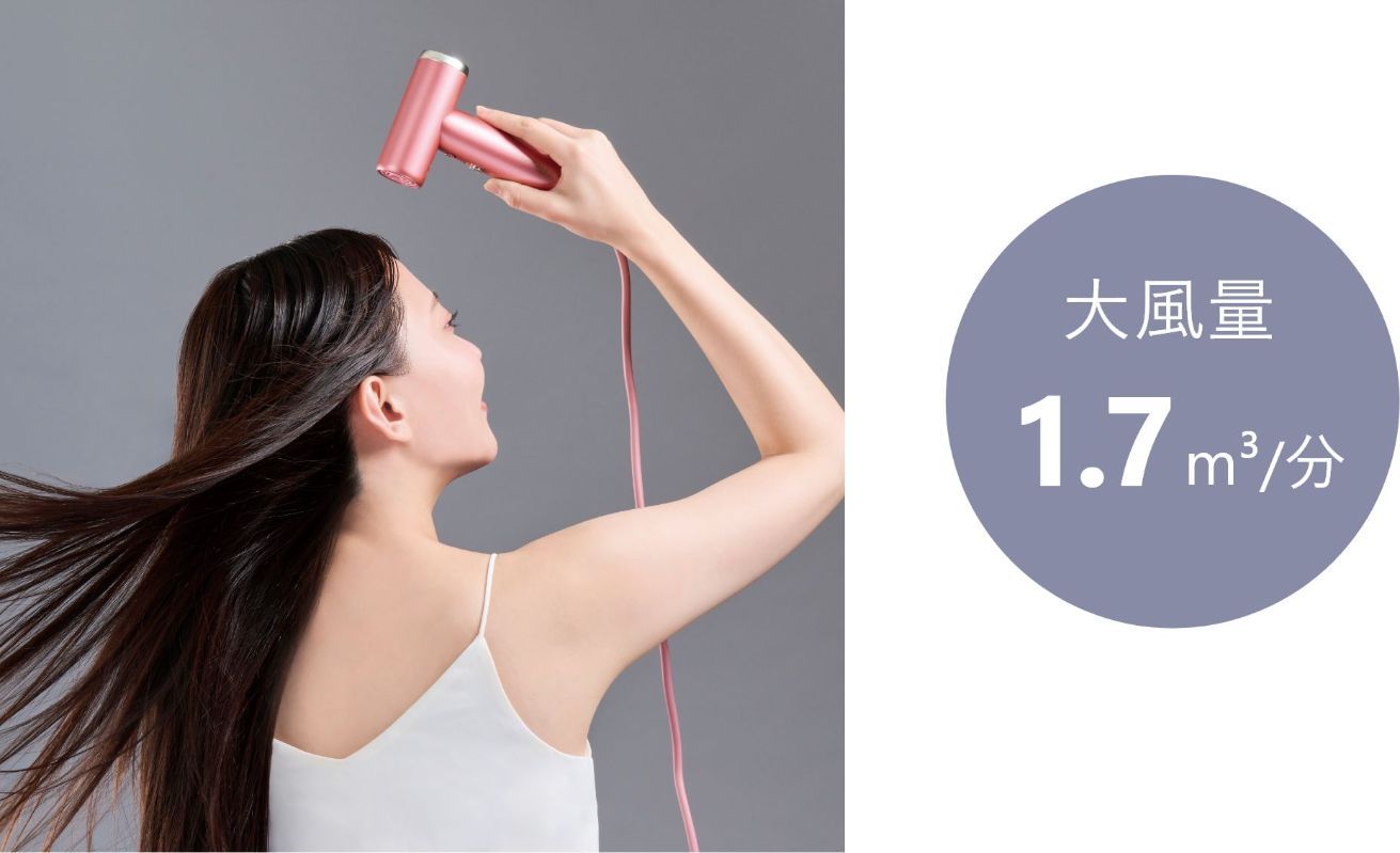 高性能なブラシレスDCモーター(BLDCモーター)を採用。 小型ながらパワフルで、風の勢いと安定感が向上。ムラのない風で髪をやさしく、スピーディーに乾かします。