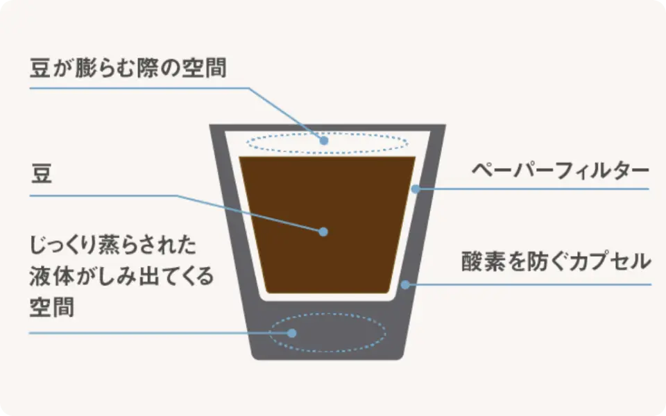 美味しさを守る独自製法のカプセル「K-Cup ®」の構造