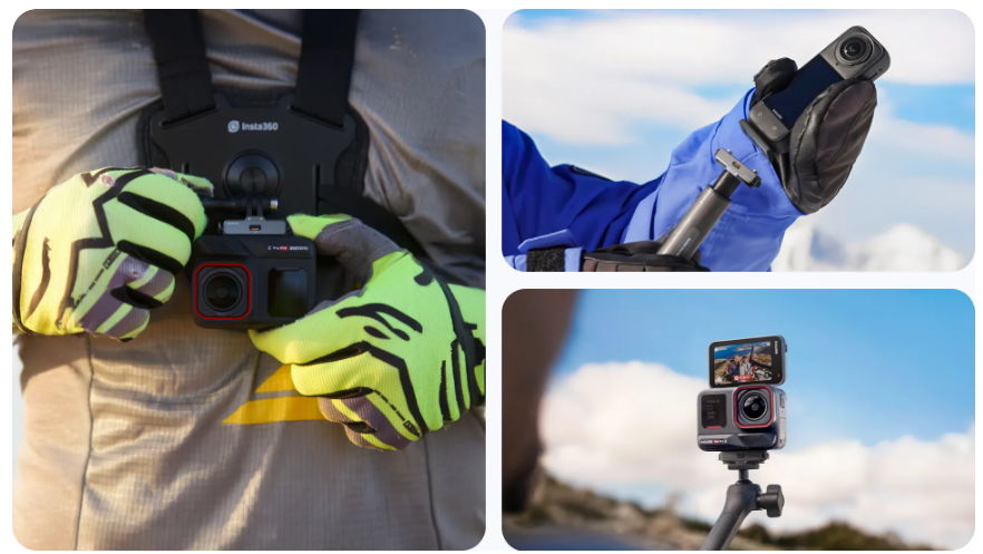 Insta360カメラ用のカスタムデザインで超薄型なので360度映像から見えない。