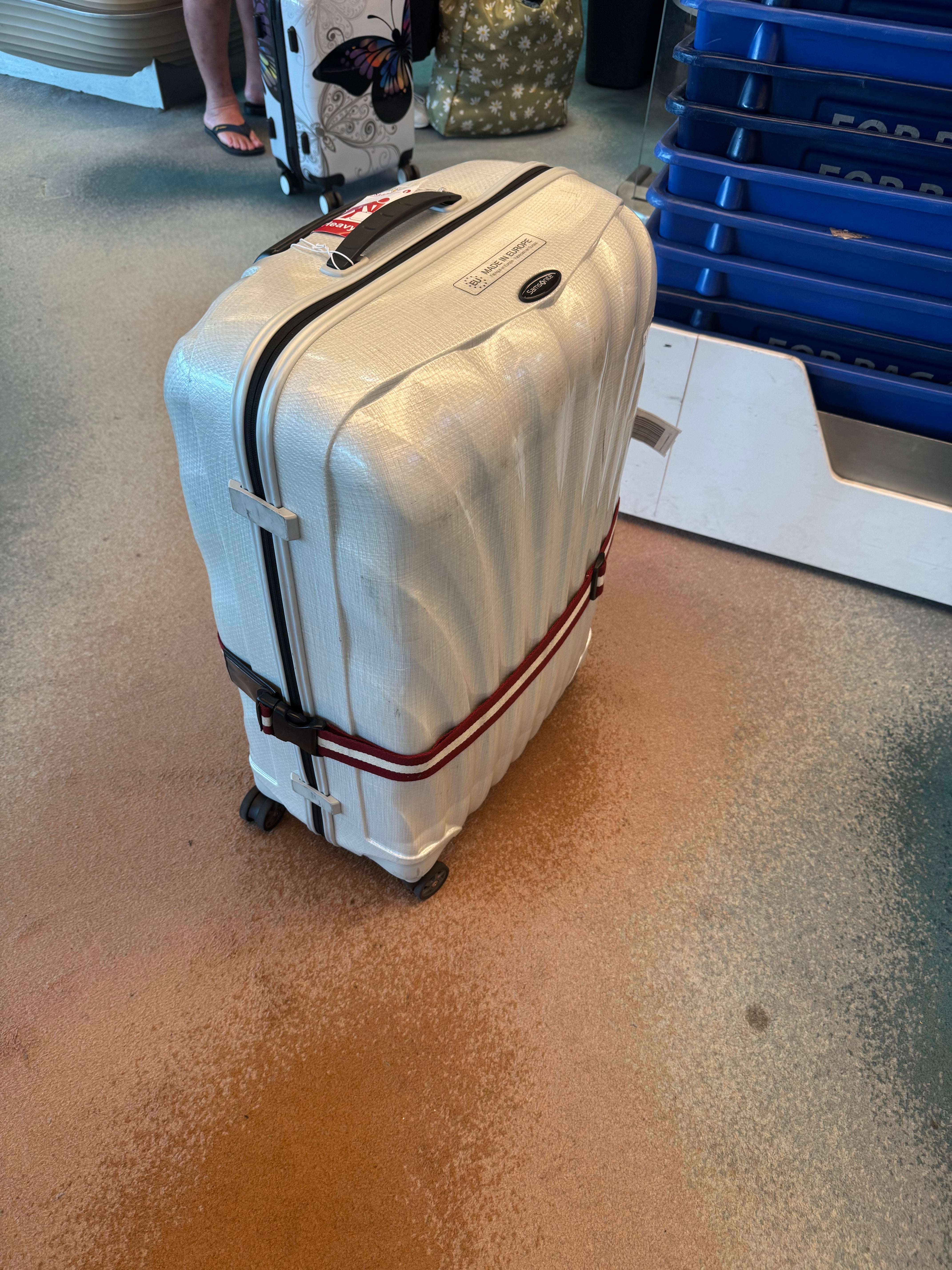 色やサムソナイトを使ってるかたがすごくおおかったので取り間違いがないようにベルトなどして対策しました!
