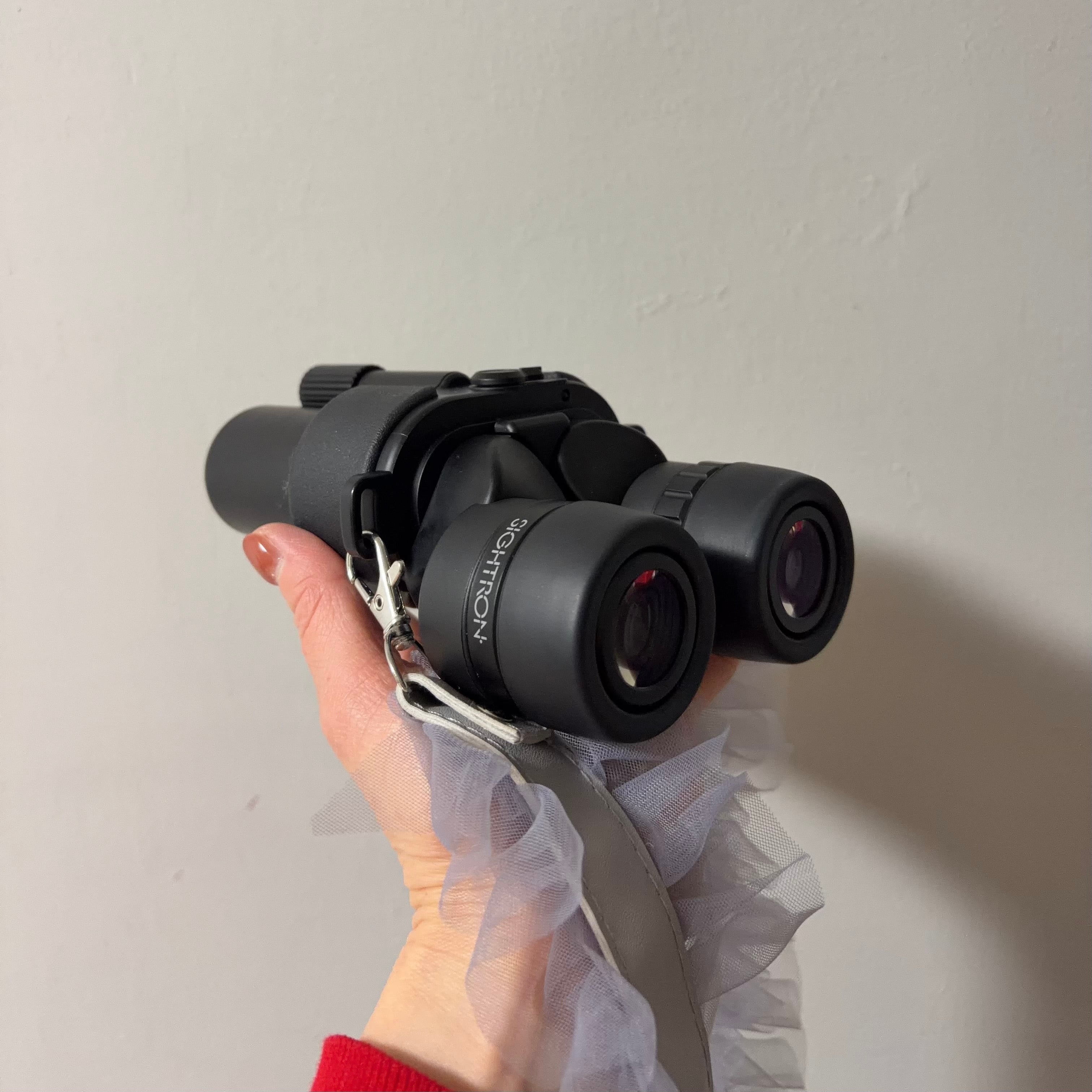 両手持ちの方が見やすいですが、片手でも持てる重さでした。公演中ずっと使用していましたが、電池切れになることもありませんでした